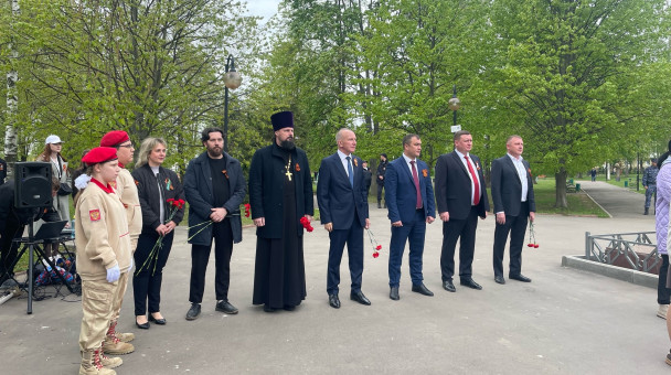 Совместно с депутатским корпусом в окончании митинга возложил цветы к вечному огню.