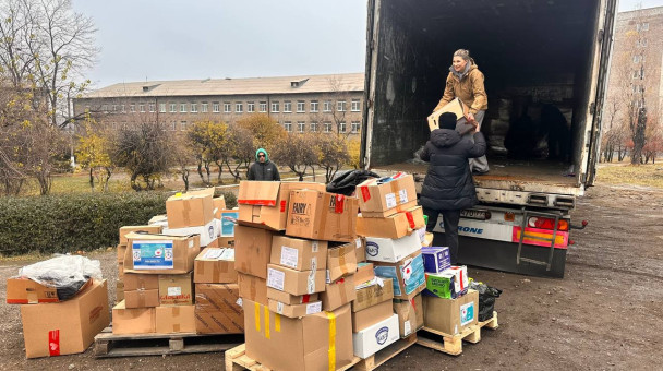 В ходе гуманитарной миссии на Донбасс передала гуманитарную помощь в техникумы Донецка, Стаханова и Макеевки