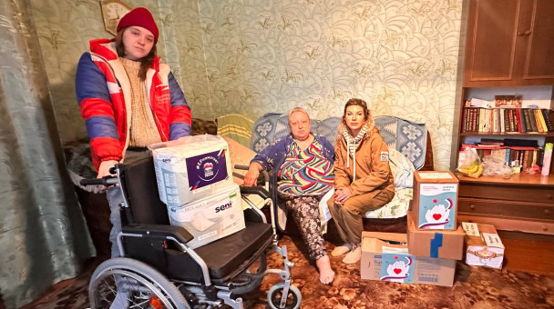 Вместе с одинцовскими волонтерами передала инвалидную коляску, лекарства и средства личной гигиены жительнице Макеевки Наталье