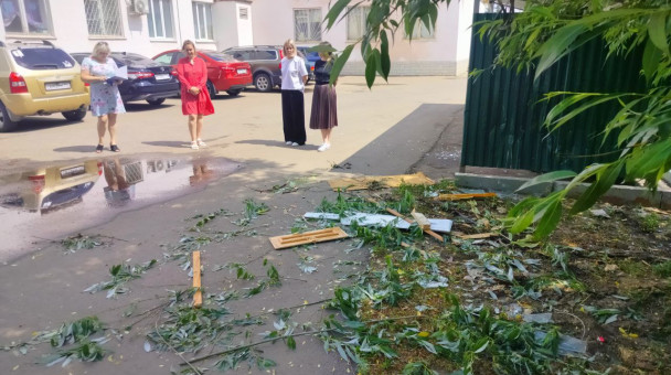 Отметили, на каких районах и улицах нужно провести работы по ликвидации последствий мощного ливня. Из проблем в основном вырванные деревья, разрушенные малые постройки. Передали городским службам информацию о местах, куда нужно прибыть в первую очередь.