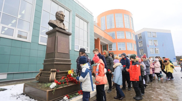 Торжественные мероприятия завершились возложением цветов к бюсту С.П. Королёву, открытому 12 апреля 2018 года в Лицее 5.