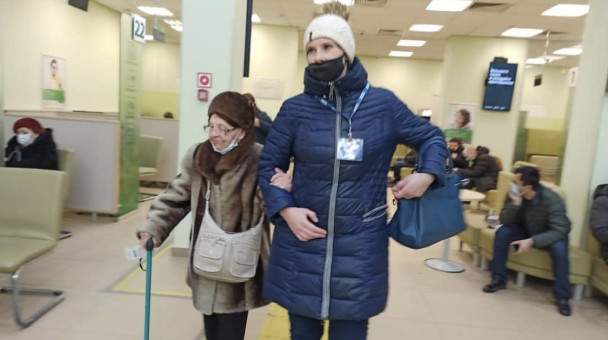 На призыв откликнулись волонтёры и сопроводили пенсионерку в банк для получения пенсии.