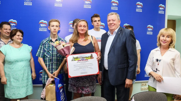 Многодетная семья Резцовых: Юрий Дмитриевич и Елена Олеговна. Воспитывают троих детей. Волонтеры благотворительного фонда «Окно в мир». Поздравил с наступающим Днем семьи, любви и верности и вручил грамоту от секретаря Королевского отделения партии Единая Россия и сладкие подарки детям в Общественной приемной партии.