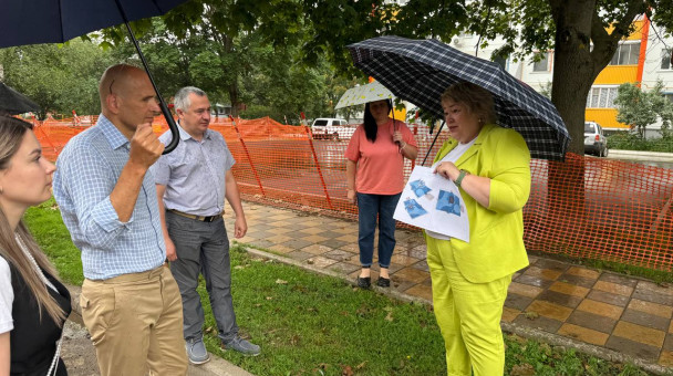 Депутат Мособлдумы Дмитрий Голубков совместно с депутатами Совета депутатов Одинцовского округа Екатериной Скориковой и Алексеем Поляковым осмотрел территорию детского сада №83 в Одинцово.